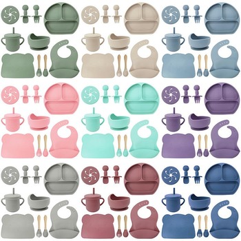2025 नई बिक्री सिलिकॉन बेबी फीडिंग बीब प्लेट चम्मच के साथ पुआल बीब प्लेट कटोरे के कप कप